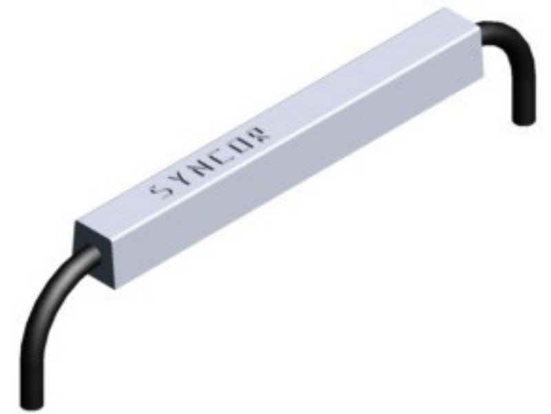 Trapezoidal anode with tubular insert protruding from doth ends“SOS”